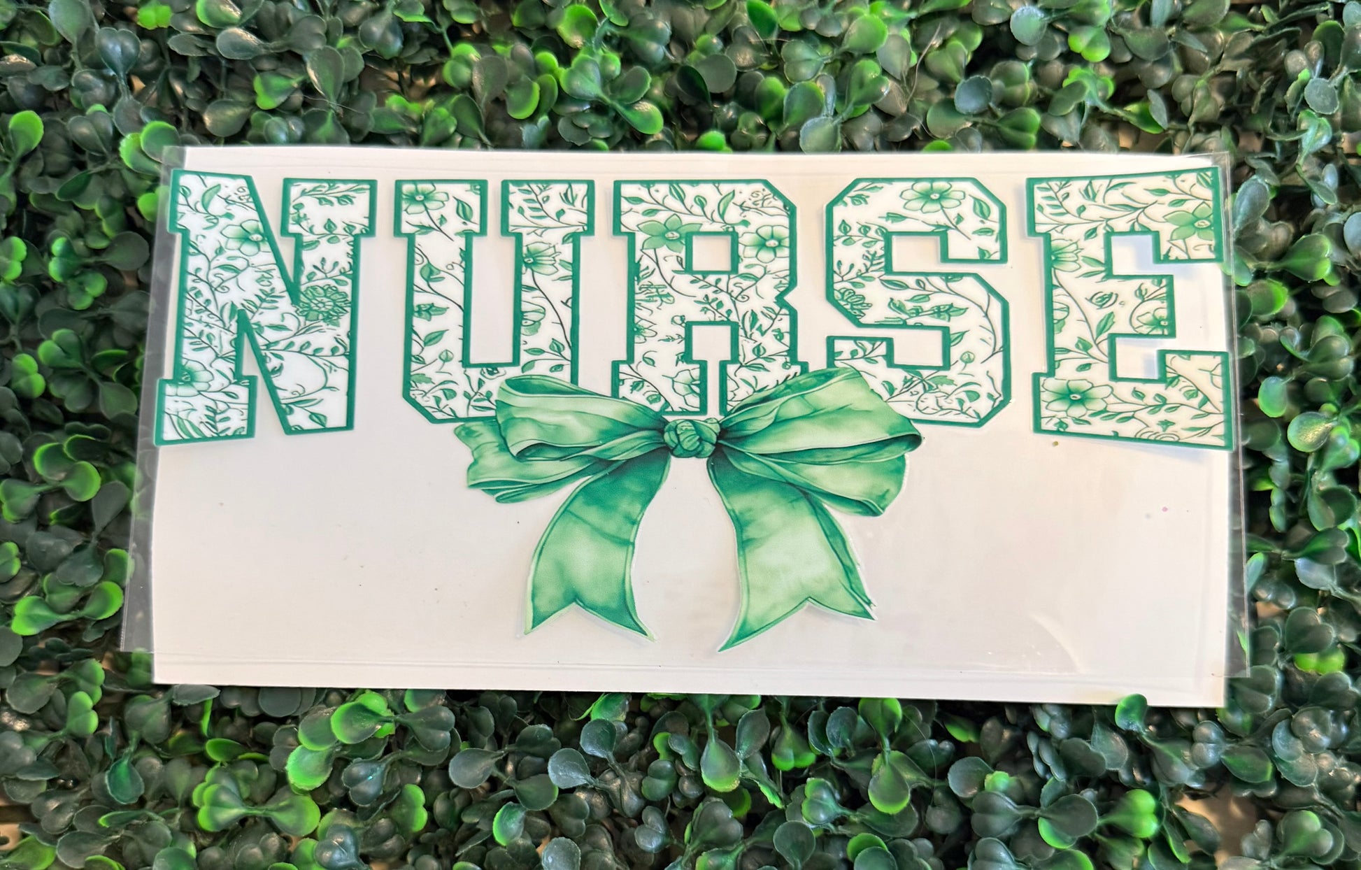 Nurse floral print green bow